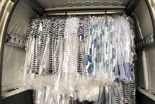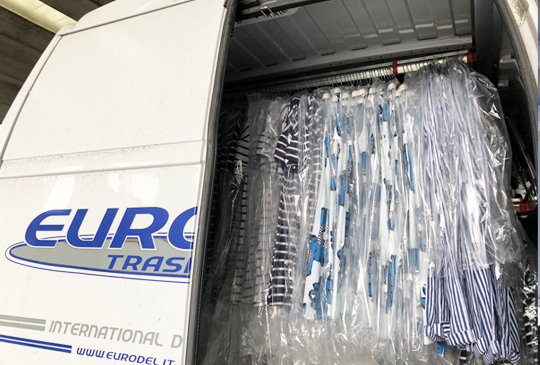 Siamo specializzati nel trasporto di capi di abbigliamento appesi. Dal ritiro alla consegna, garantiamo i più alti livelli di servizio utilizzando furgoni equipaggiati con barre metalliche e allestimenti adeguati al mantenimento del capo nelle condizioni originali.